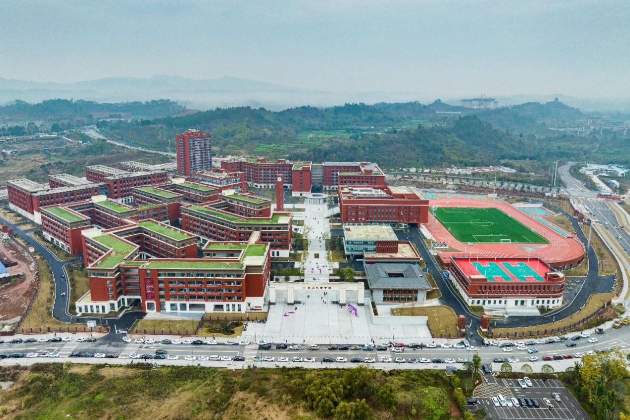 重庆璧山巴蜀中学作为西部(国际)数字经济产业园核心教育配套,创办于1933年。巴蜀中学是由重庆市璧山区政府、区教委与重庆市巴蜀中学校合作创办的一所集初、高中为一体的公办完全中学。学校位于璧山区轻轨一号线站点以北,玉泉湖畔,离渝蓉高速出口一公里。该校总建筑面积约17.5万㎡,可容纳60个初中班及30个高中班,是璧山区推进教育强区战略的关键布局。